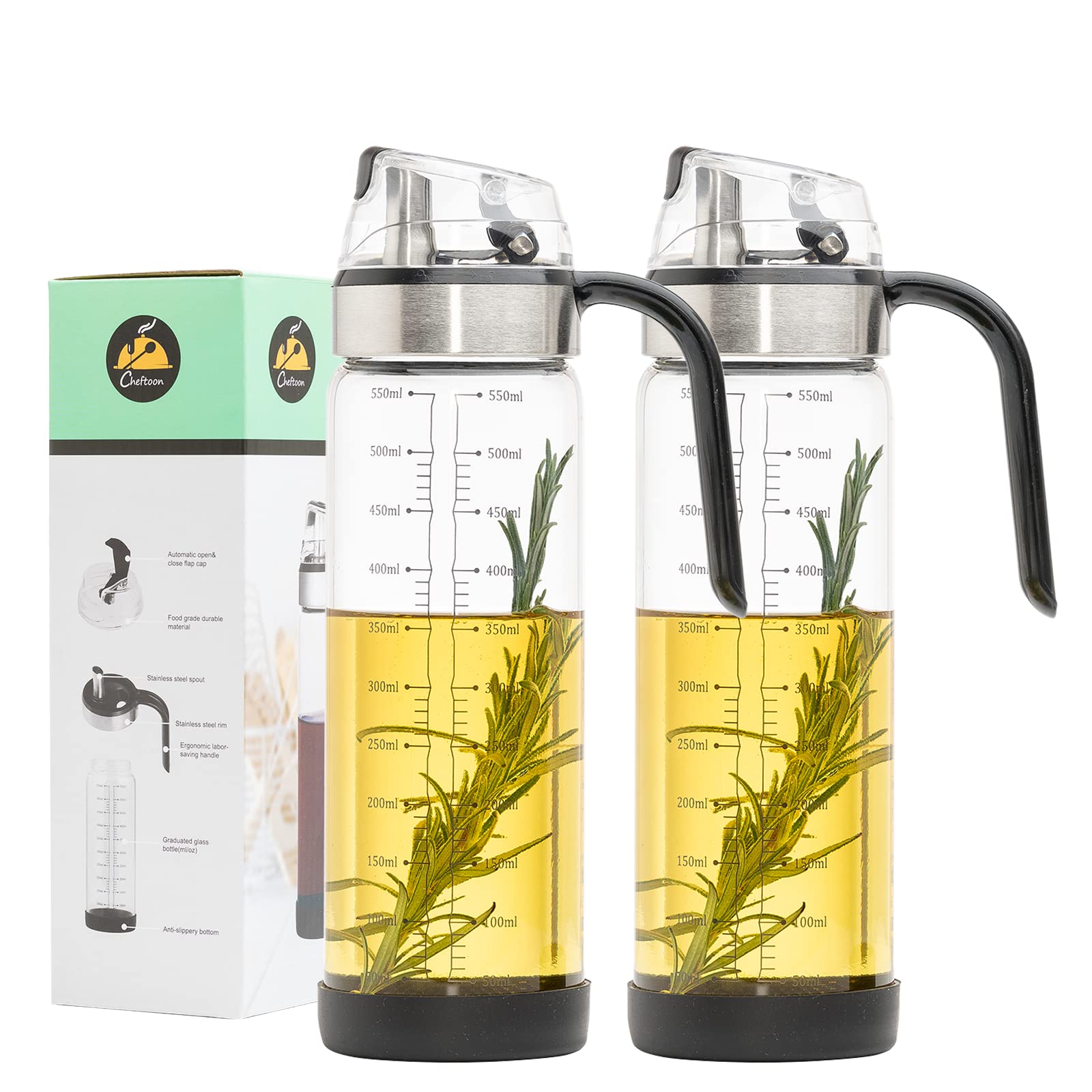 Amazon Com Olive Oil Dispenser Auto Flip Oil Vinegar Dispenser Set Non Drip Clear Glass Oil Container 18 Oz With Stainless Steel Spout Leakproof Oil Cruet Hot Oil Resistance For Kitchen Cooking Set Of 2